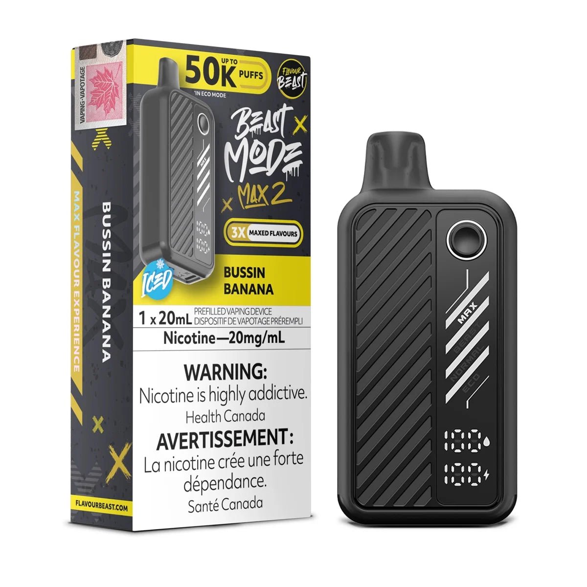 Bussin Banana Iced Flavour Beast Mode Max 2 50K Disposable Vape is the ultimate choice for vape enthusiasts seeking convenience, flavor, and long-lasting performance. Designed for smooth and satisfying draws, this disposable vape offers up to 50,000 puffs, making it perfect for heavy users or on-the-go vaping.