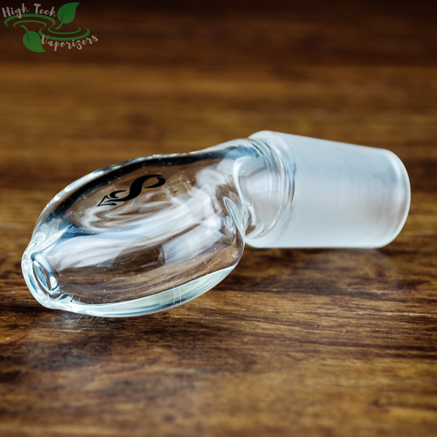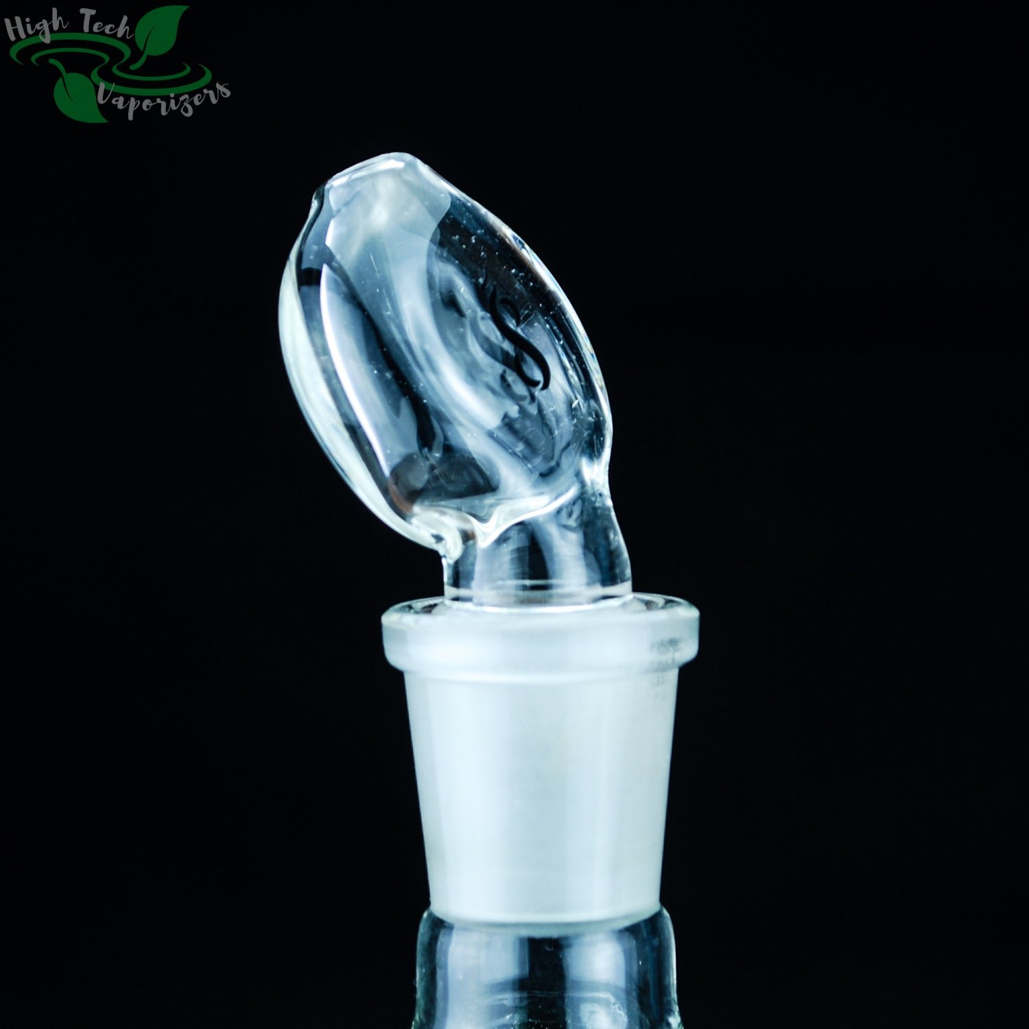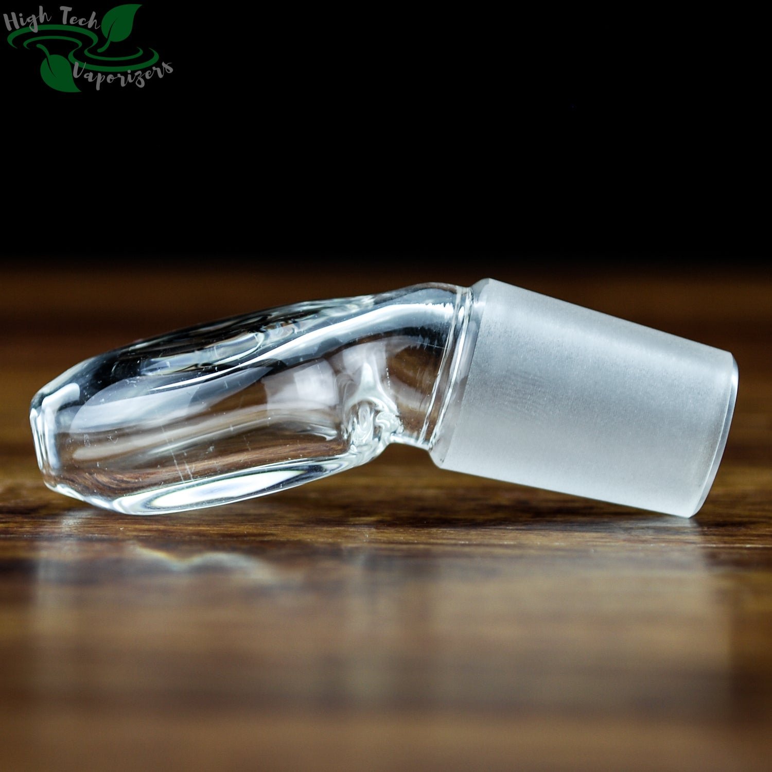 This is a angled mouthpiece with a 19mm male ground glass connection. For use in combination with a Ground Glass to Hose Adapter, or with a Vapor Tamer.