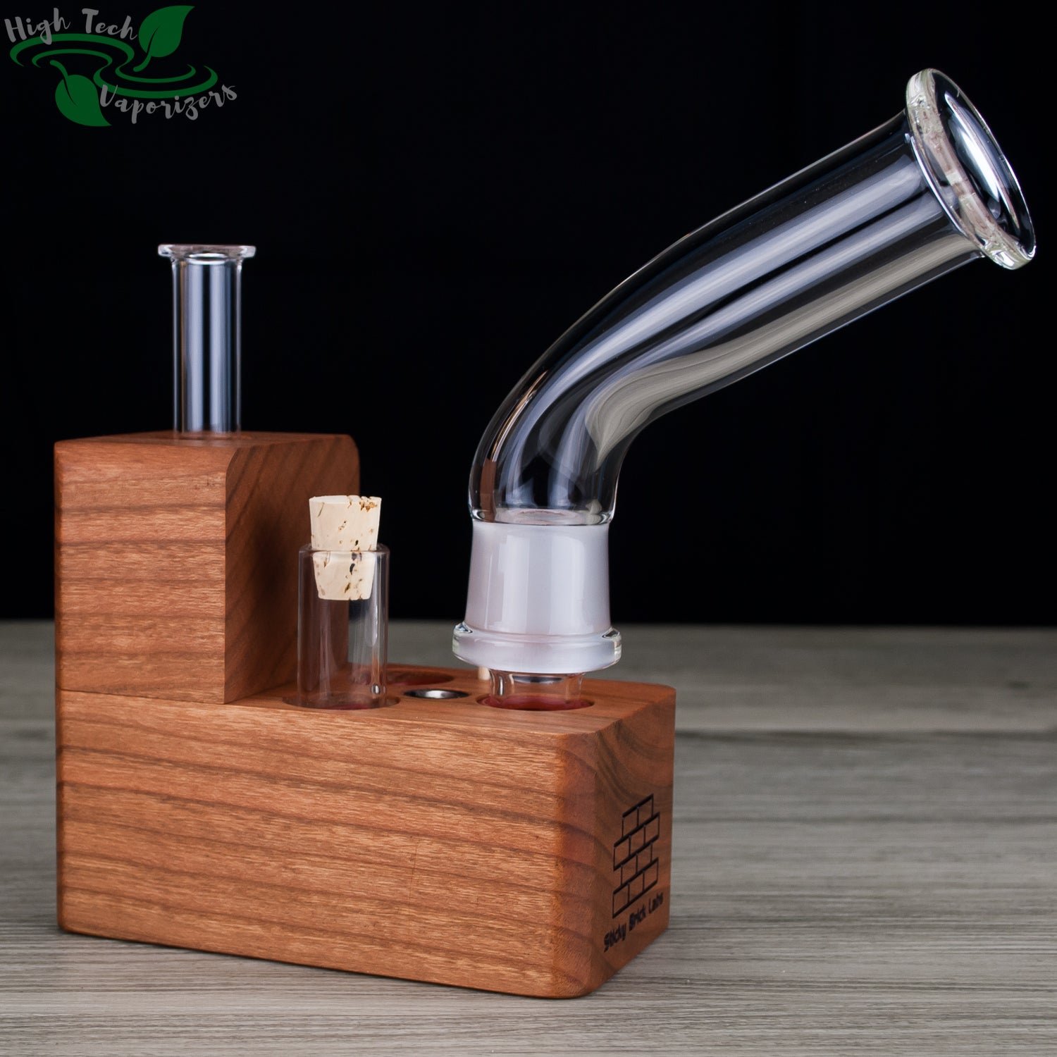 The HydroBrick Maxx by Sticky Brick Labs is the most advanced and versatile Sticky Brick to date. It is a semi portable desktop extraction device that has most of what you need self contained inside the hardwood body of the HydroBrick Maxx. Inside the max there is a wooden pick, flame intake and corked glass tube to store your herb.