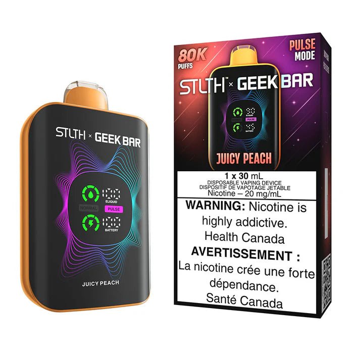 The STLTH x GEEK BAR Disposable (80K Edition) combines dependable power with smart, glanceable controls. A generous 30 mL reservoir and 820 mAh rechargeable battery support extended use, while the vibrant display shows battery, e-liquid, and mode in real time. Choose Off, Normal, or Pulse to fine-tune intensity—then enjoy a lush, peach-forward profile with a smooth finish every time.
