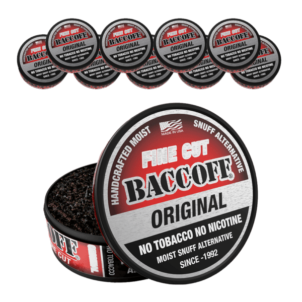 & Free ShippingPack a lip of BaccOff Original Fine Cut for a natural flavored, tobacco free chew. (aka if you’re trying to quit Copenhagen.)