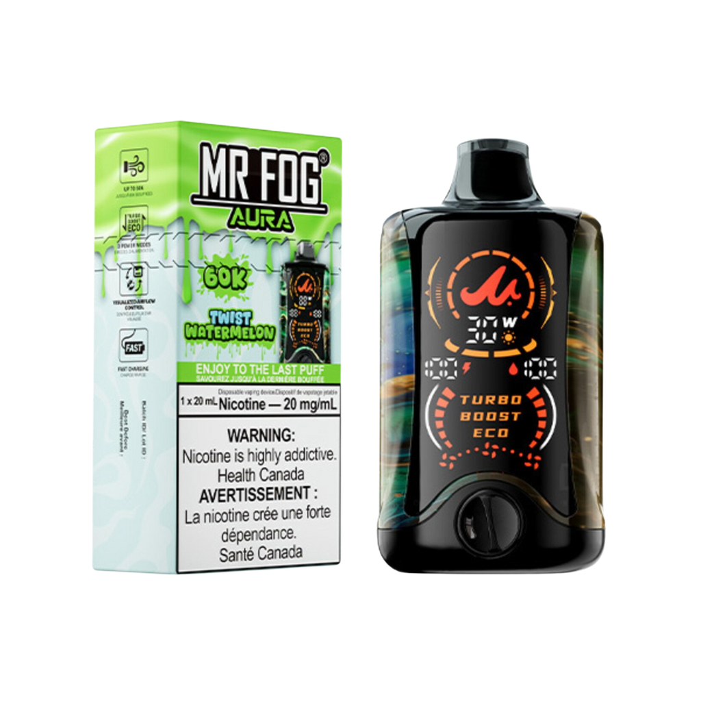Experience the perfect summer twist with the Mr. Fog Aura 60K Disposable Vape in Twist Watermelon.